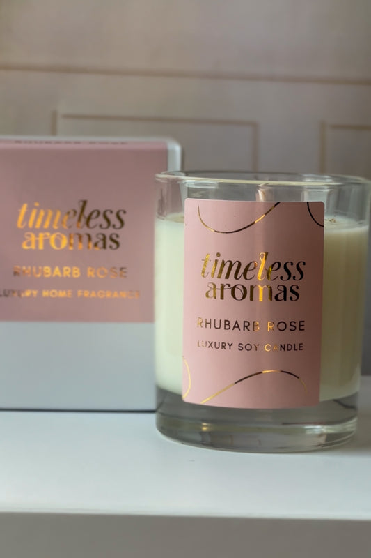 Rhubarb Rose Luxury Scented Candle 200g - 36 Hours Burn Time, Fruity-Floral Fragrance
